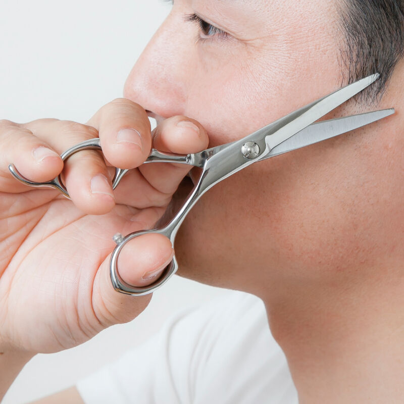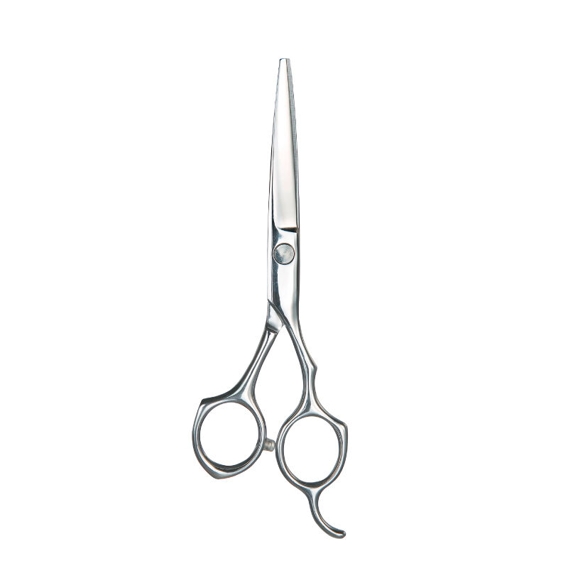 The secret to a neat haircut lies in the proper use of your haircutting scissors: Place your thumb in the lower scissor eye and your ring finger in the upper scissor eye. The cutting movement of the haircutting scissors comes primarily from the thumb. It is best to cut the hair when it is smooth and dry and shorten only with the tip of the hair cutting scissors.