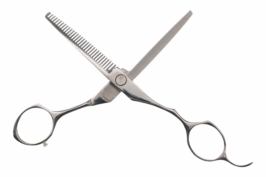The secret to a good haircut lies in the proper use of your hair cutting scissors: Place your thumb in the lower scissor eye and your ring finger in the upper scissor eye. The cutting motion of the haircutting scissors comes primarily from the thumb. It is best to cut the hair when it is smooth and dry and shorten only with the tip of the hair cutting scissors.